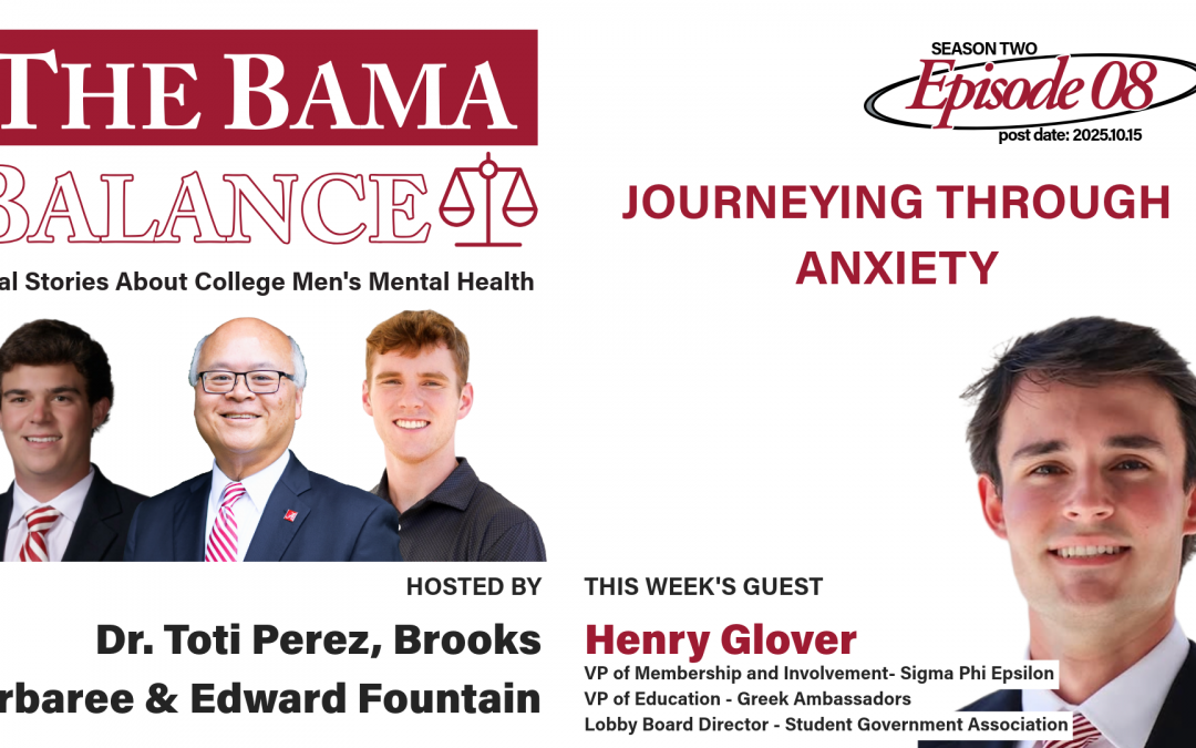 In continuing to explore the nature of anxiety for college men, Henry Glover (VP of Membership and Involvement- Sigma Phi Epsilon, VP of Education – Greek Ambassadors, Lobby Board Director – Student Government Association) joins us for this episode as he shares his mental health journey, providing some key insights and takeaways for college men in the ways that he has been able to successfully address and cope with anxiety.
